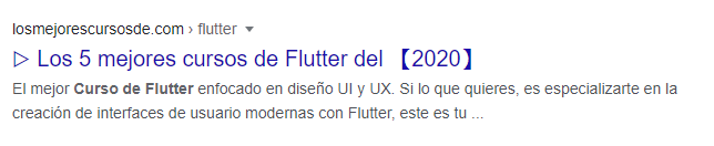 Si estás iniciando en el mundo del marketing de afiliados, seguramente en algunos ejemplos, has visto que existen sitios que agregan al final del título, un año, por ejemplo, si buscas algo como “curso de flutter”, encontrarás un resultado similar a este: